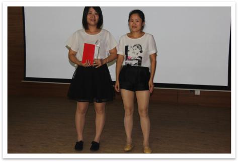 圖為:主持人開場 (組件三車間主任顏金壇先生&財務部仲苗苗女士)